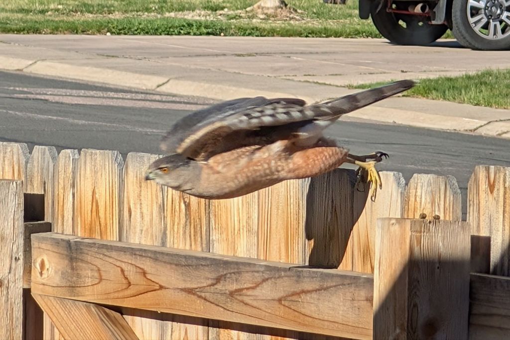 Posted on April 5, 2026 by StanielFocused A Cooper’s Hawk going to get something in the back yard.. It missed.. Cooper Share this: Share on X (Opens in new window) X Share on Facebook (Opens in new window) Facebook Like Loading... Related